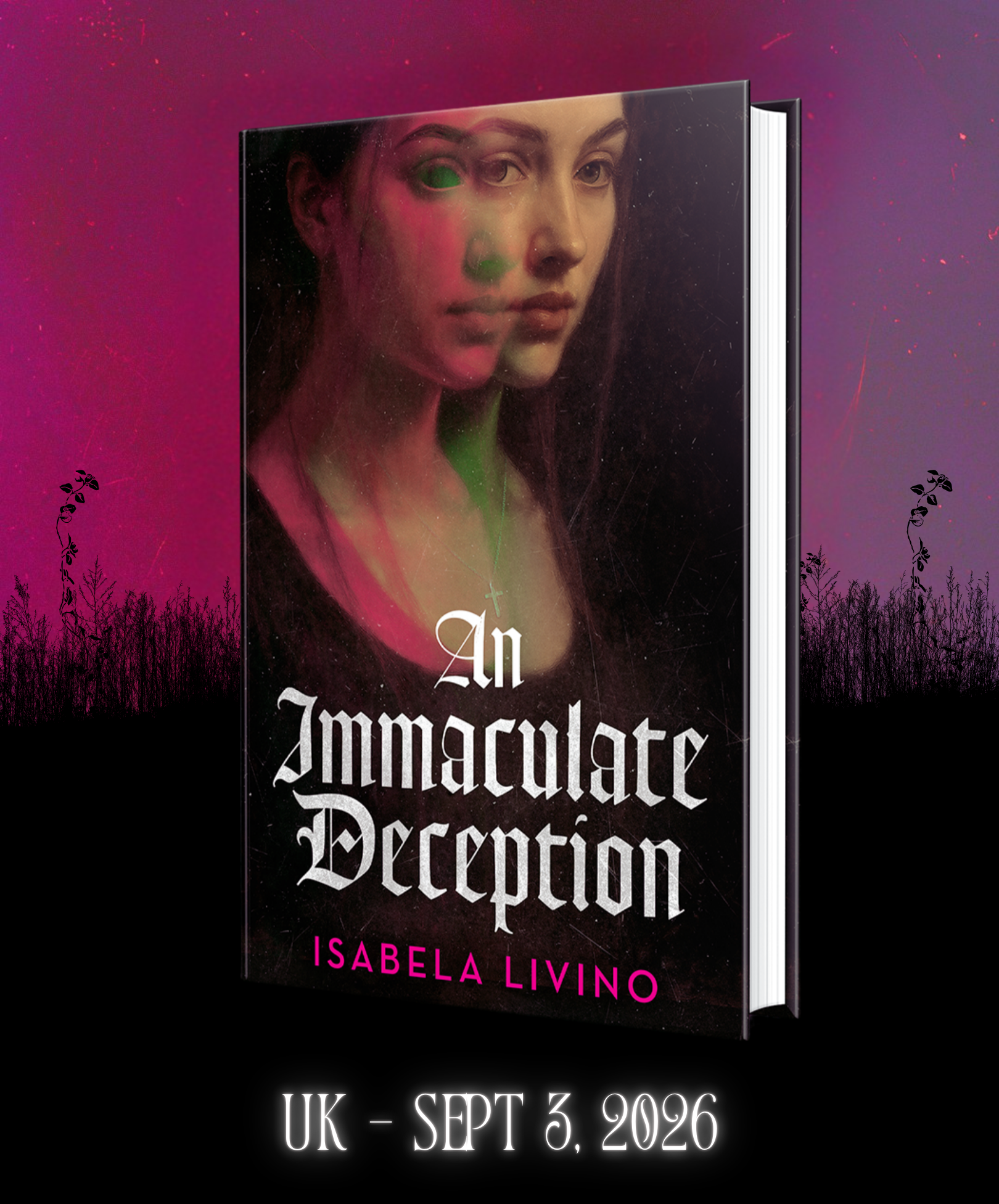 Her debut gothic horror novel AN IMMACULATE DECEPTION is coming out in autumn 2026 from Dutton, an imprint of Penguin Random House, in the US, and from Gollancz in the UK.